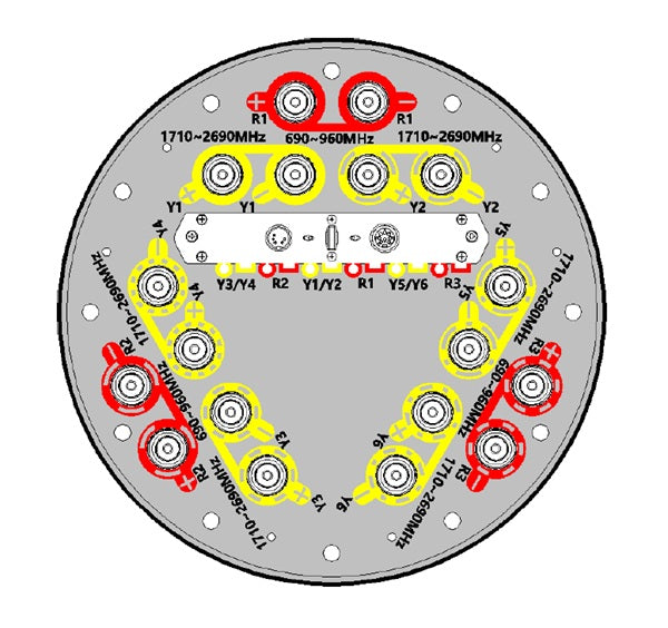 Multi Band 3-Sector 18-Port Antenna, 3 x 690~960 / 6 x 1710~2690MHz, 65° Horizontal Beam Width